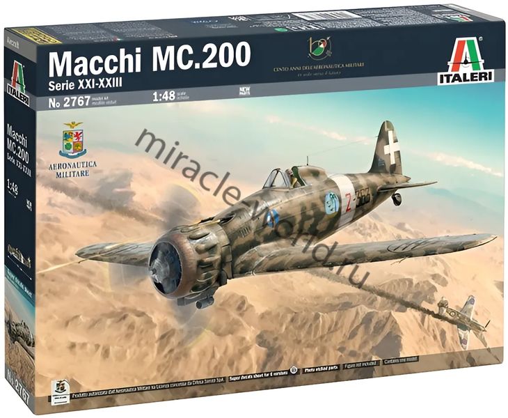 Сборная модель итальянского многоцелевого истребителя Macchi MC.200 "Saetta" (XXI-XXIII серия) в масштабе 1/48 от фирмы Italeri (артикул 2767).