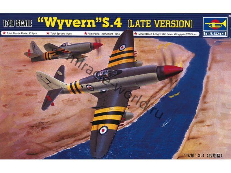 Сборная модель британского палубного истребителя торпедоносца Westland Wyvern S.Mk.4 / S.4 (late) в масштабе 1/48 от фирмы Trumpeter (артикул 02820).