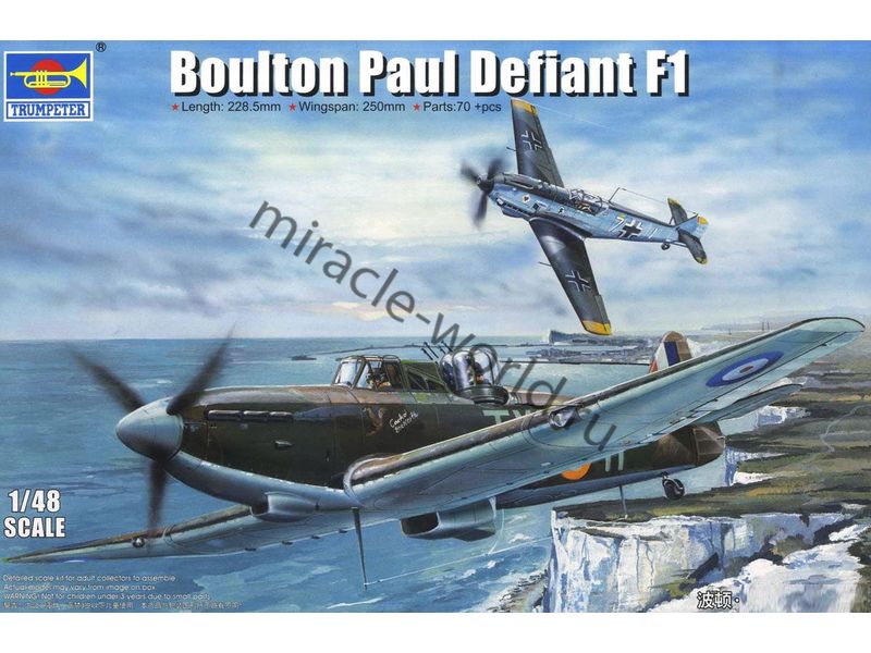 Сборная модель британского истребителя Boulton Paul Defiant F.I в масштабе 1/48 от фирмы Trumpeter (артикул 02899).