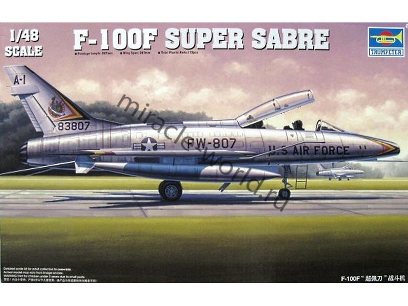 Сборная модель американского учебно - боевого истребителя North American F-100F "Super Sabre" в масштабе 1/48 от фирмы Trumpeter (артикул 02840).