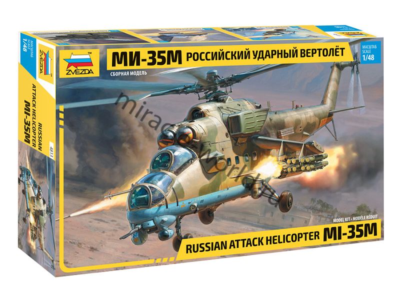 Сборная модель российского мелевого ударно - транспортного вертолета Ми-35М в масштабе 1/48 от фирмы Звезда / Zvezda (артикул 4813).