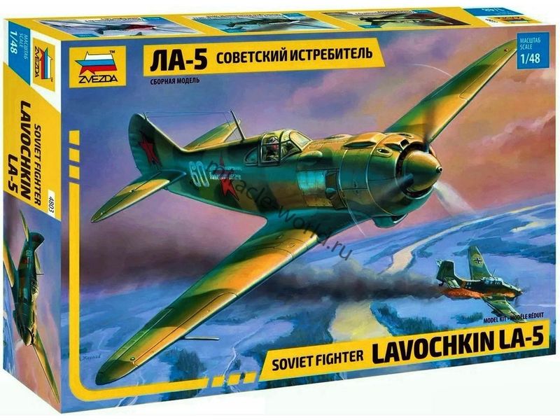 Сборная модель советского истребителя Ла-5 в масштабе 1/48 от фирмы Звезда / Zvezda (артикул 4803).