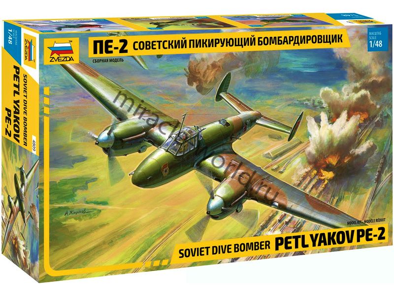Сборная модель советского пикищего бомбардировщика Пе-2 в масштабе 1/48 от фирмы Звезда / Zvezda (артикул 4809).