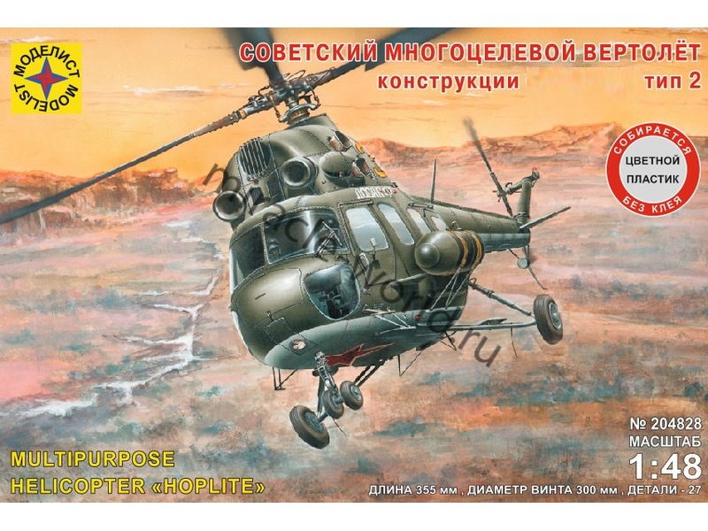 Сборная модель советского многоцелевого вертолета Вертолет (М) тип 2 в масштабе 1/48 от фирмы Моделист (артикул 204828).