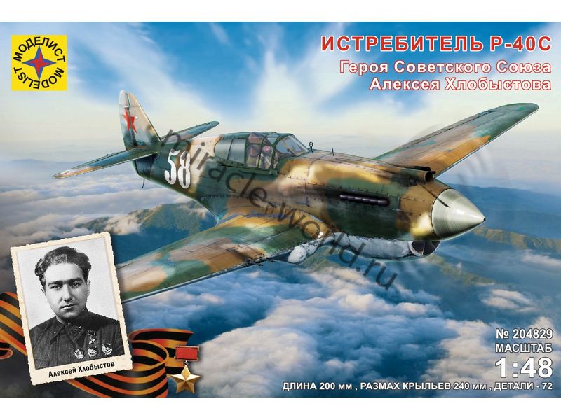Сборная модель американского истребителя Curtiss P-40C "Tomahawk" / "Алексея Хлобыстова" в масштабе 1/48 от фирмы Моделист (артикул 204829).