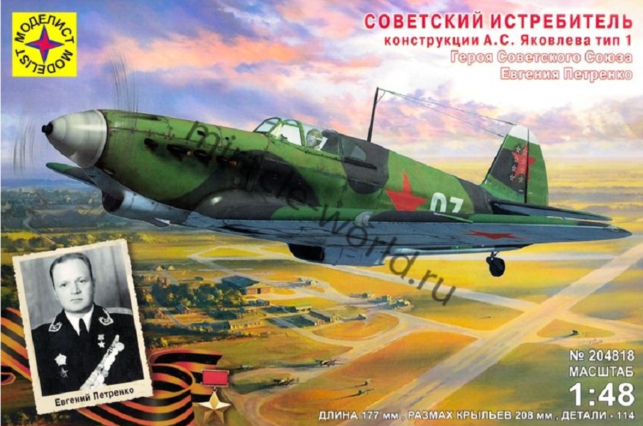 Сборная модель советского истребителя Самолет (Я) тип 1Б в масштабе 1/48 от фирмы Моделист (артикул 204831).