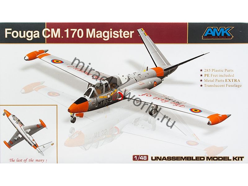 Сборная модель французского учебно-боевого самолета Fouga CM.170 "Magister" в масштабе 1/48 от фирмы AMK (артикул 88004).