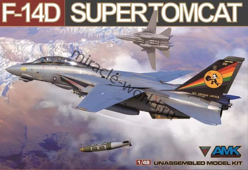 Сборная модель американского палубного многоцелевого истребителя Grumman F-14D "Super Tomcat" в масштабе 1/48 от фирмы AMK (артикул 88011).