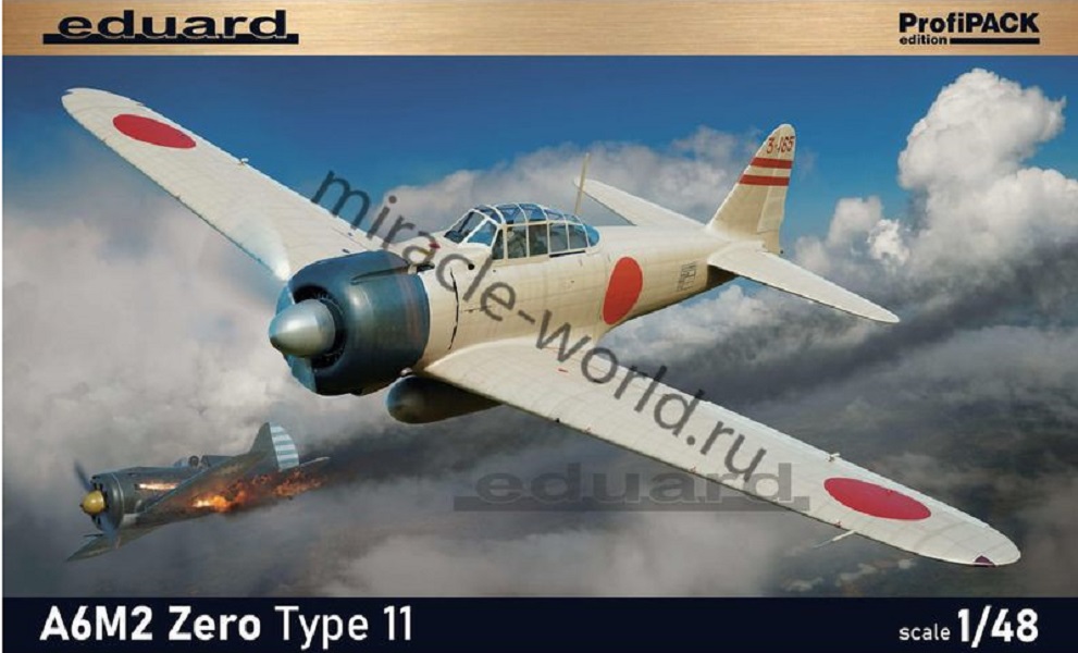 Сборная модель японского палубного истребителя Nakajima A6M2 Zero Type 0 Model 11 "Zeke" в масштабе 1/48 от фирмы Eduard (артикул 82211).