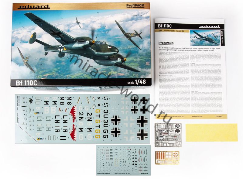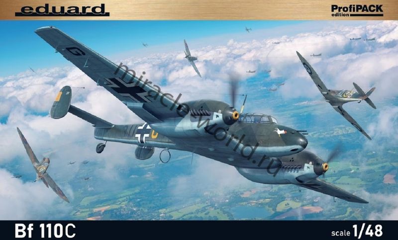 Сборная модель немецкого тяжелого истребителя Messerschmitt Bf-110C в масштабе 1/48 от фирмы Eduard (артикул 8209).