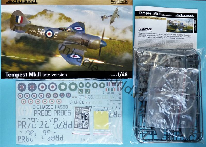 Сборная модель британского истребителя - бомбардировщика Tempest Mk.II / Mk.2 (поздняя версия) в масштабе 1/48 от фирмы Eduard (артикул 82125).