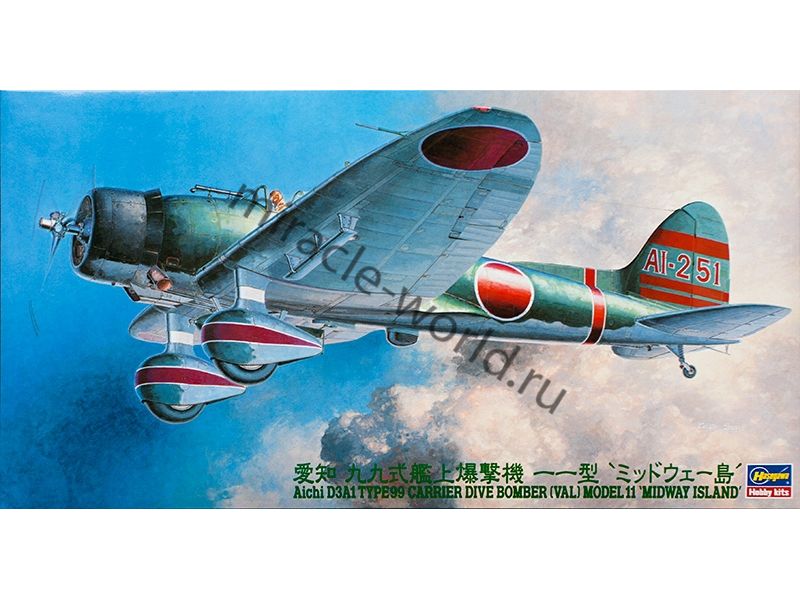 Сборная модель японского палубного бомбардировщика Aichi D3A1 Type 99 Model 11 "Val" в масштабе 1/48 от фирмы Hasegawa (артикул 09056).