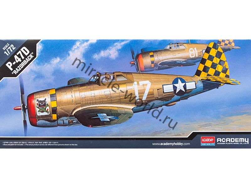 Сборная модель американского истребителя-бомбардировщика Republic P-47D "Thunderbolt" с фонарем кабины "Razor-Back" в масштабе 1/72 от фирмы Academy (артикул 12492).
