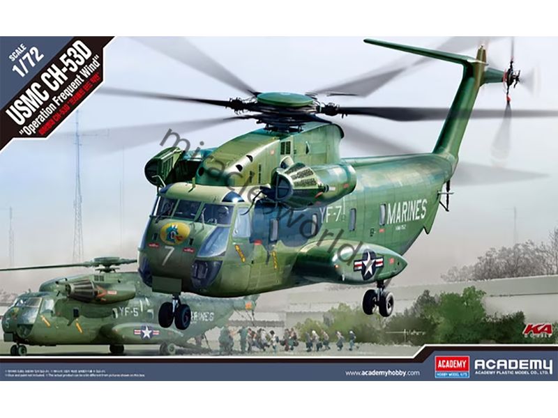 Сборная модель американского многоцелевого вертолета Sikorsky CH-53D USMC "Operation Frequent Wind" в масштабе 1/72 от фирмы Academy (артикул 12575).