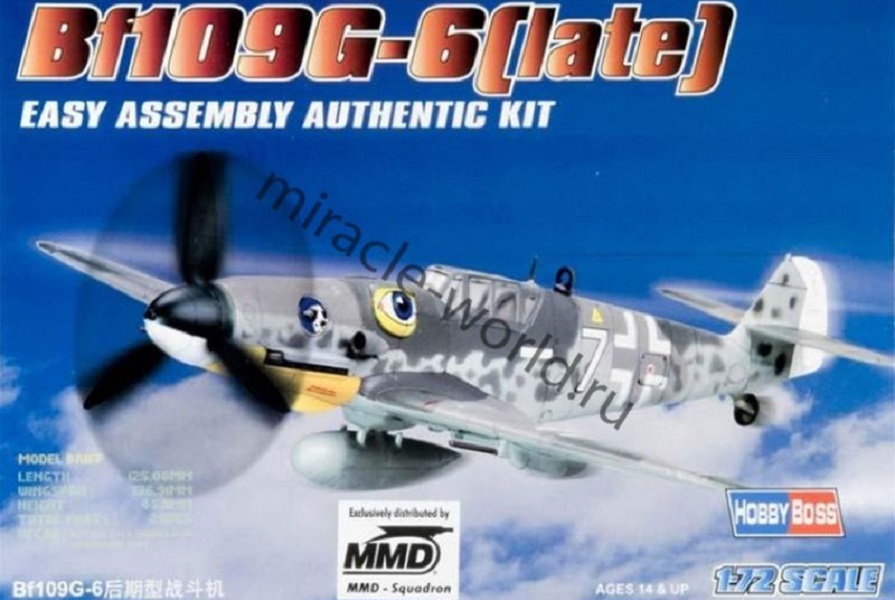 Сборная модель немецкого истребителя Messerschmitt Bf-109G-6 (late) в масштабе 1/72 от фирмы Hobby Boss (артикул 80226).