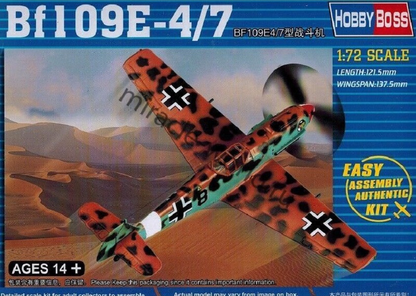 Сборная модель немецкого истребителя Messerschmitt Bf-109E-4 / Bf-109E-7 в масштабе 1/72 от фирмы Hobby Boss (артикул 80254).