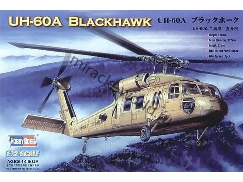 Сборная модель американского многоцелевого военно-транспортного вертолета Sikorsky UH-60A "Black Hawk" в масштабе 1/72 от фирмы Hobby Boss (артикул 87216).