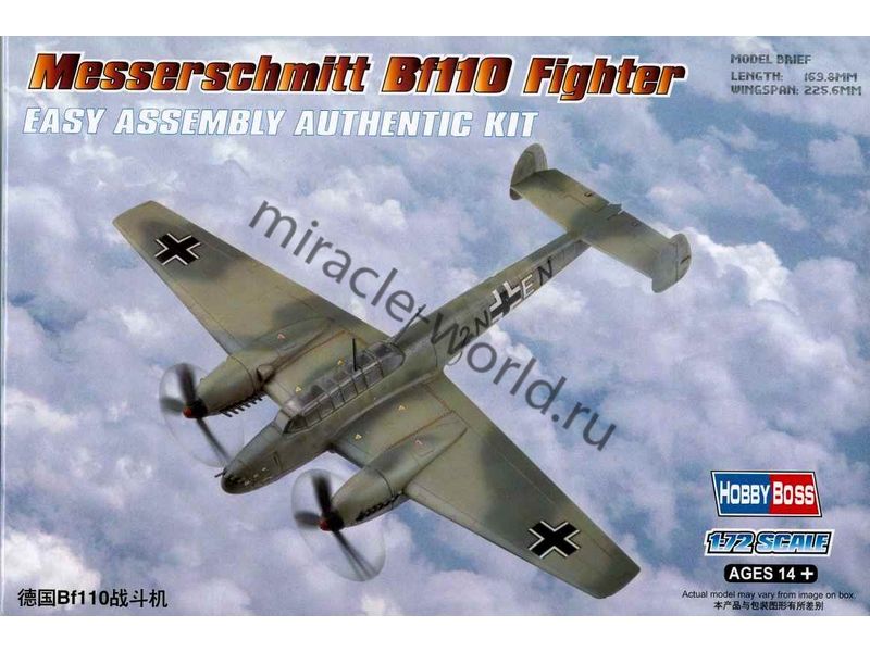 Сборная модель немецкого тяжелого истребителя Messerschmitt Bf-110 в масштабе 1/72 от фирмы Hobby Boss (артикул 80292).