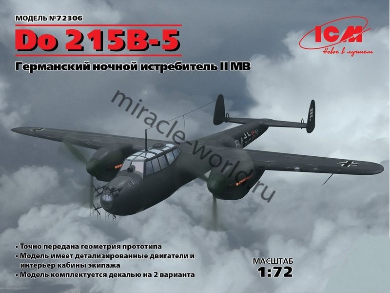 Сборная модель немецкого тяжелого ночного истребителя Dornier Do-215B-5 в масштабе 1/72 от фирмы ICM (артикул 72306).