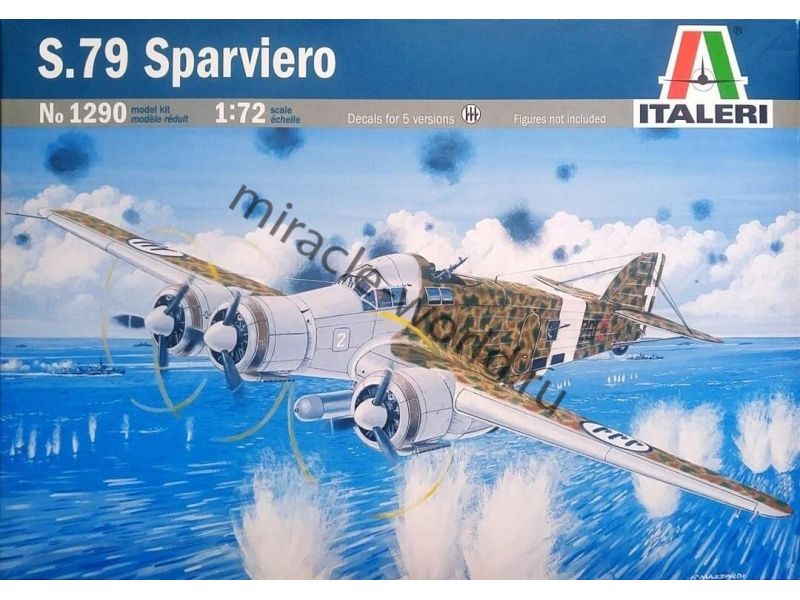 Сборная модель итальянского бомбардировщика-торпедоносца Savoia-Marchetti SM.79 / S.79 "Sparviero" в масштабе 1/72 от фирмы Italeri (артикул 1290).