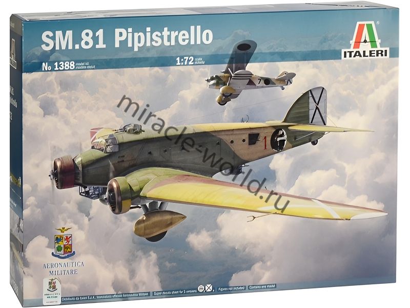 Сборная модель итальянского среднего бомбардировщика, военно - транспортного самолета Savoia-Marchetti SM.81 "Pipistrello" в масштабе 1/72 от фирмы Italeri (артикул 1388).