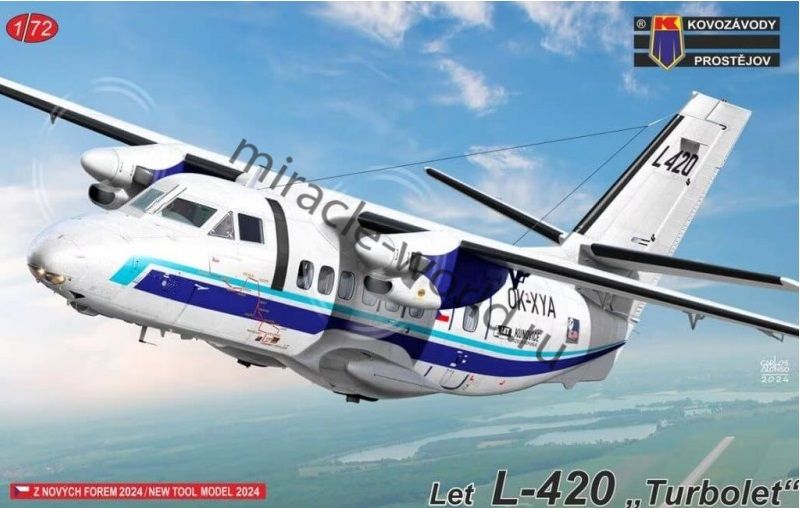 Сборная модель чешского авиалайнераLet L-420 "Turbolet" в масштабе 1/72 от фирмы Kovozávody Prostějov (артикул KPM0438).