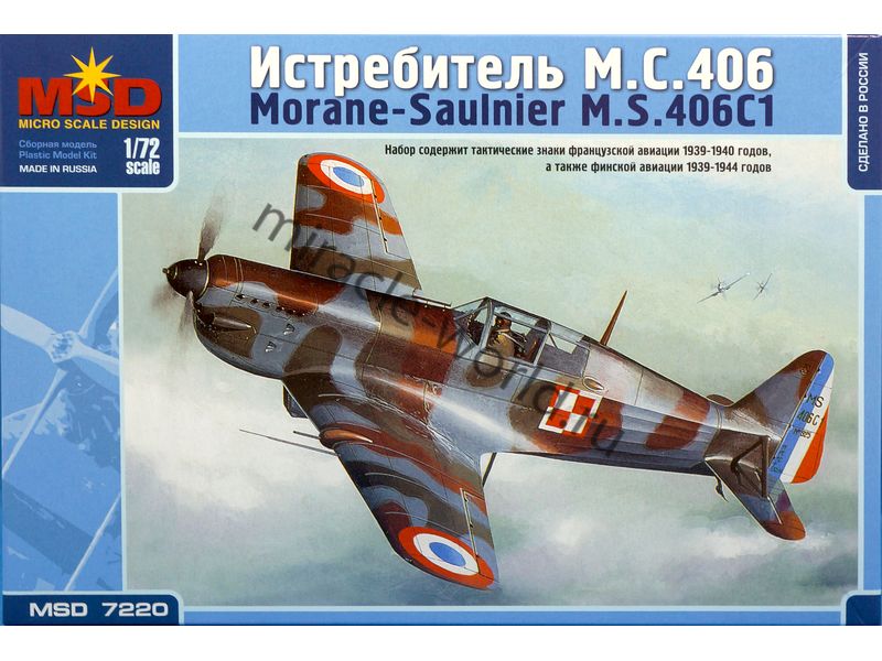Сборная модель французского истребителя Morane-Saulnier MS.406C1 в масштабе 1/72 от фирмы MSD / Maquette (артикул 7220).