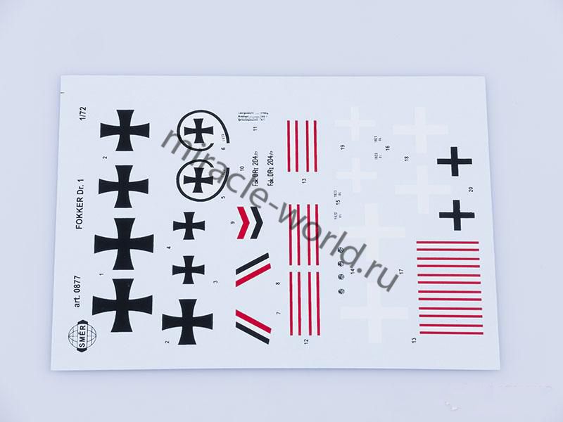 Сборная модель немецкого истребителя Fokker Dr.I в масштабе 1/72 от фирмы Smer (артикул 0877).