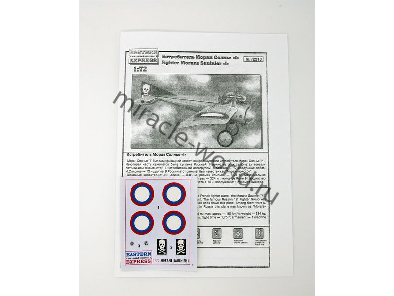 Сборная модель французского истребителя Morane-Saulnier Type I в масштабе 1/72 от фирмы Восточный Экспресс / Eastern Express (артикул 72210).
