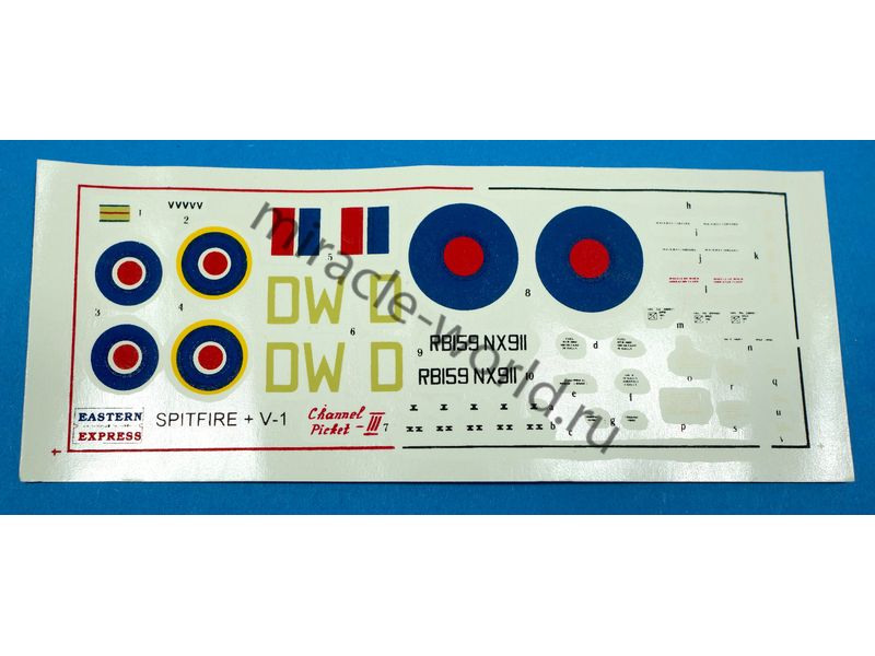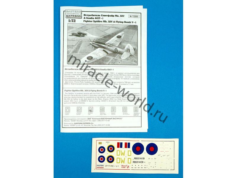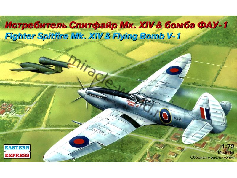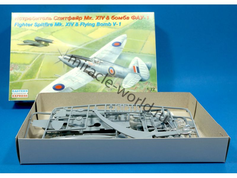 Сборная модель британского истребителя и немецкой крылатой ракеты Supermarine Spitfire Mk.XIV и ФАУ-1 / V-1 в масштабе 1/72 от фирмы Восточный Экспресс / Eastern Express (артикул 72263).
