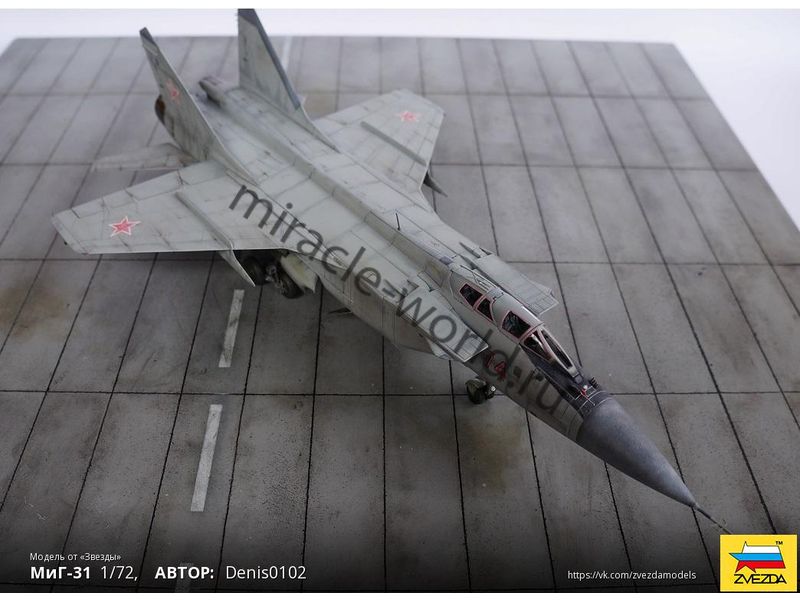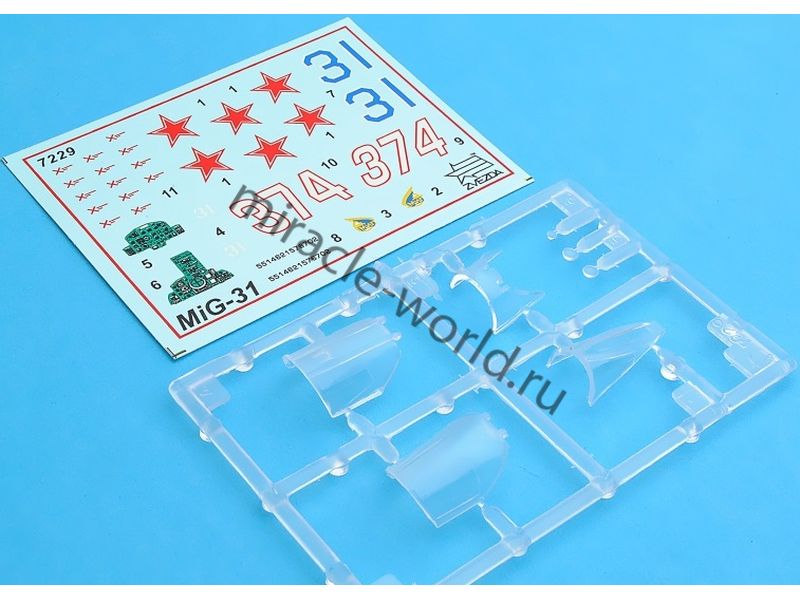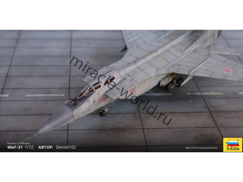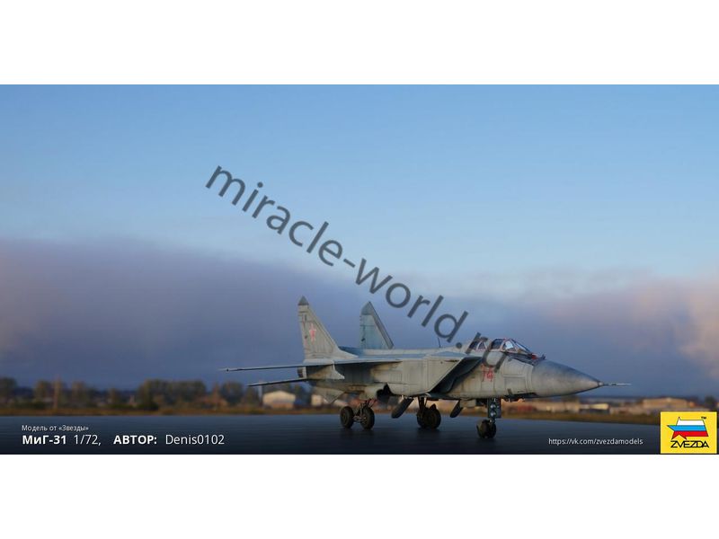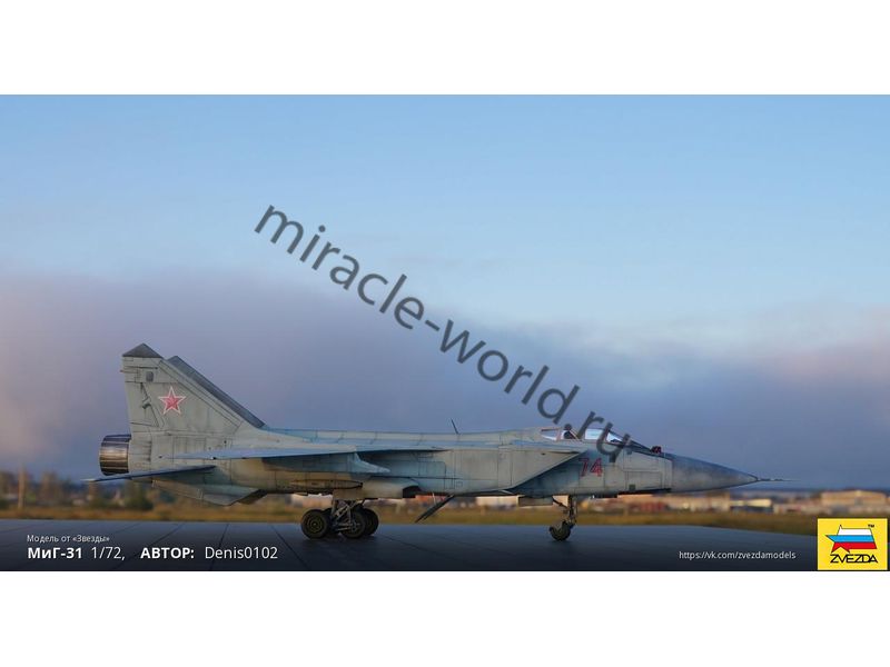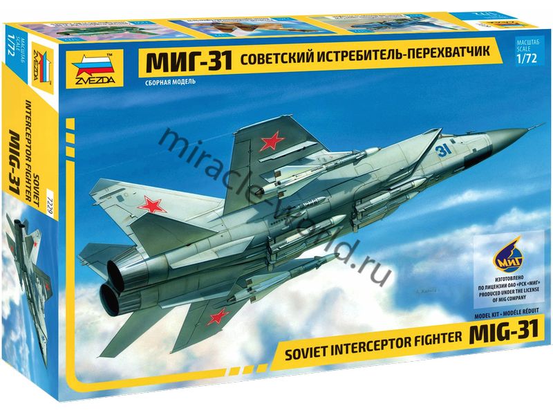 Сборная модель советского / российского сверхзвукового истребителя - перехватчика МиГ-31 в масштабе 1/72 от фирмы Звезда / Zvezda (артикул 7229).