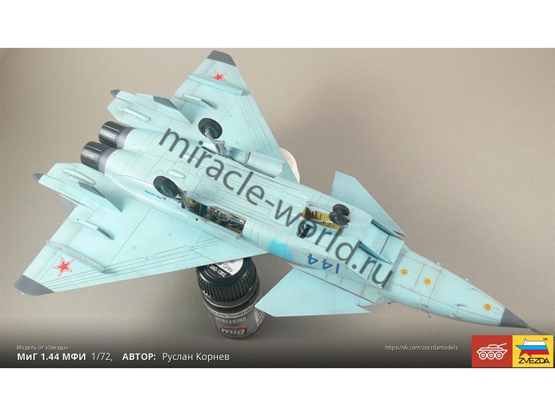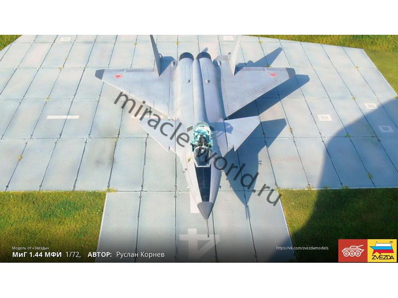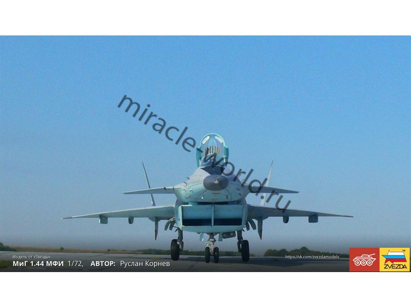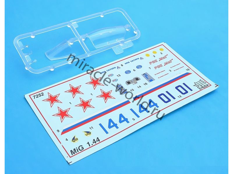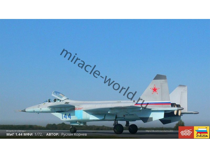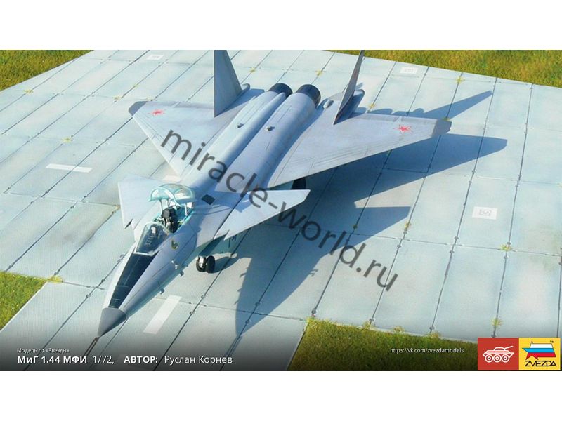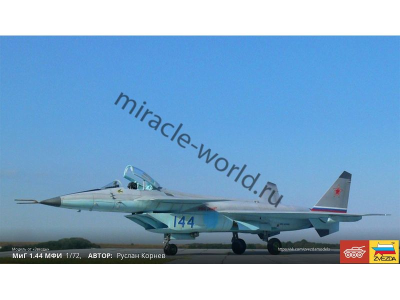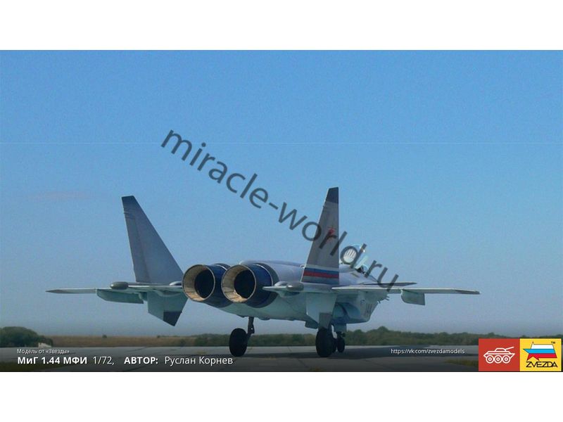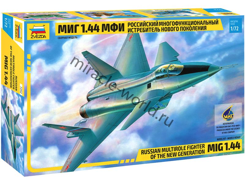 Сборная модель советского / российского многоцелевого фронтового истребителя МиГ-1.44 в масштабе 1/72 от фирмы Звезда / Zvezda (артикул 7252).