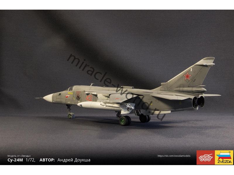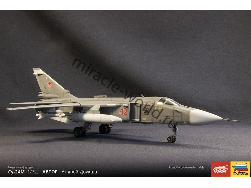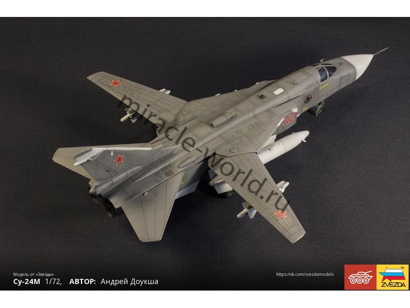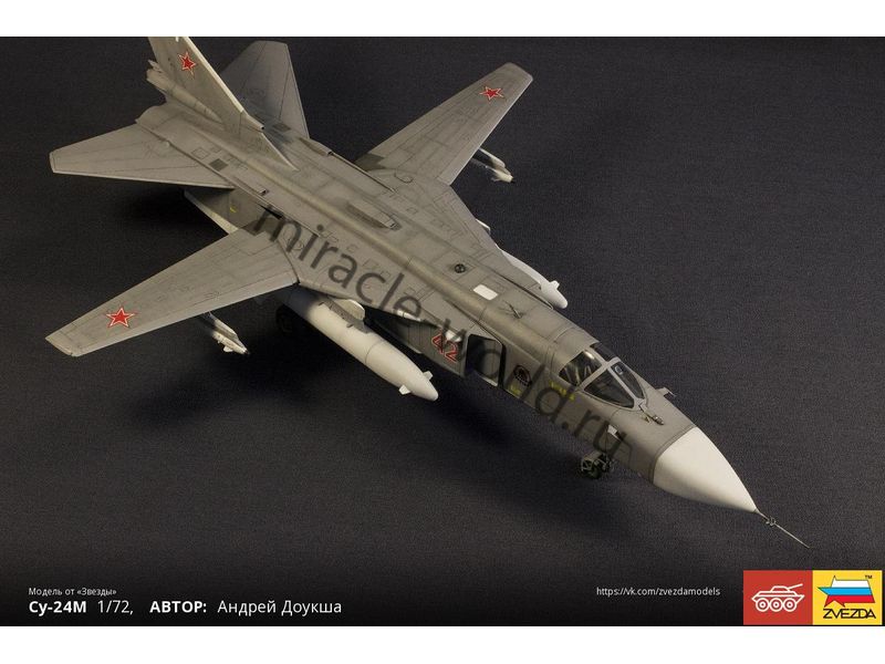 Сборная модель советского / российского фронтового бомбардировщика Су-24М в масштабе 1/72 от фирмы Звезда / Zvezda (артикул 7267).