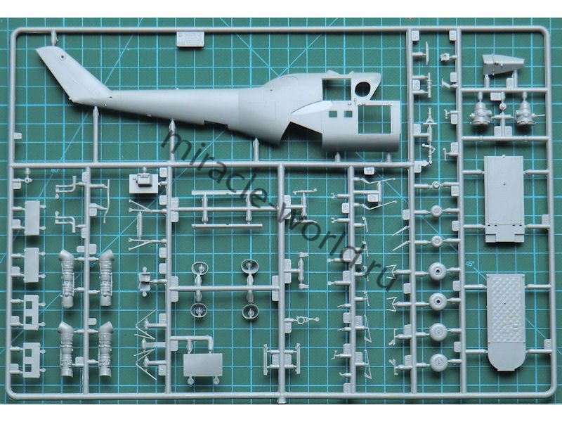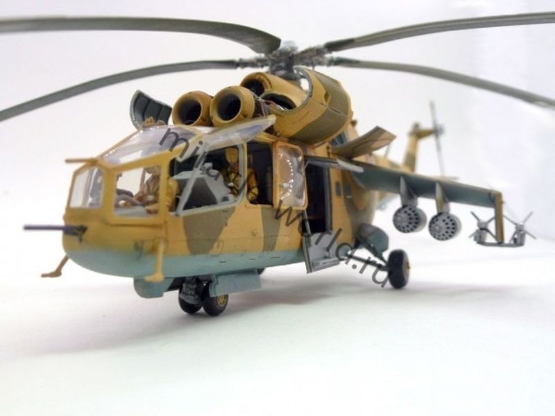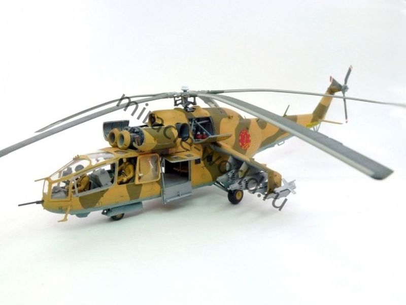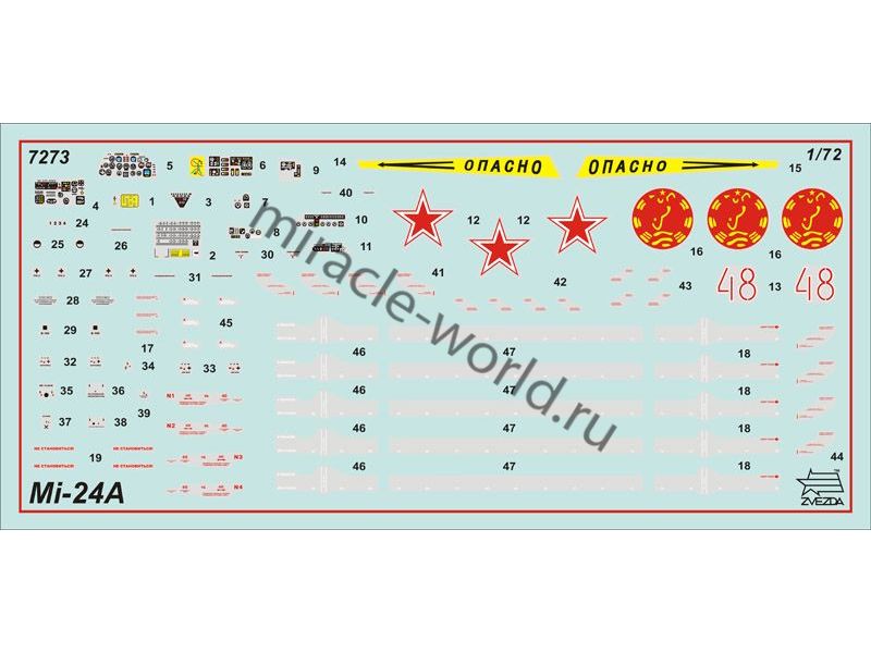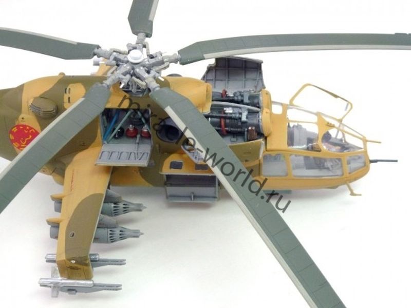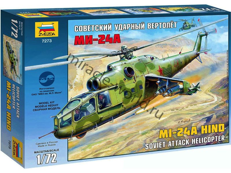 Сборная модель советского многоцелевого ударно-транспортного вертолета Ми-24А в масштабе 1/72 от фирмы Звезда / Zvezda (артикул 7273).