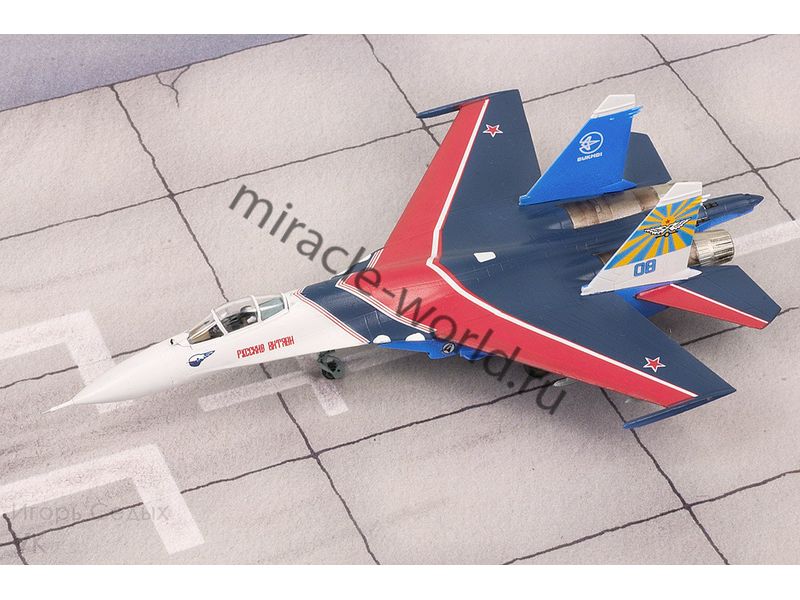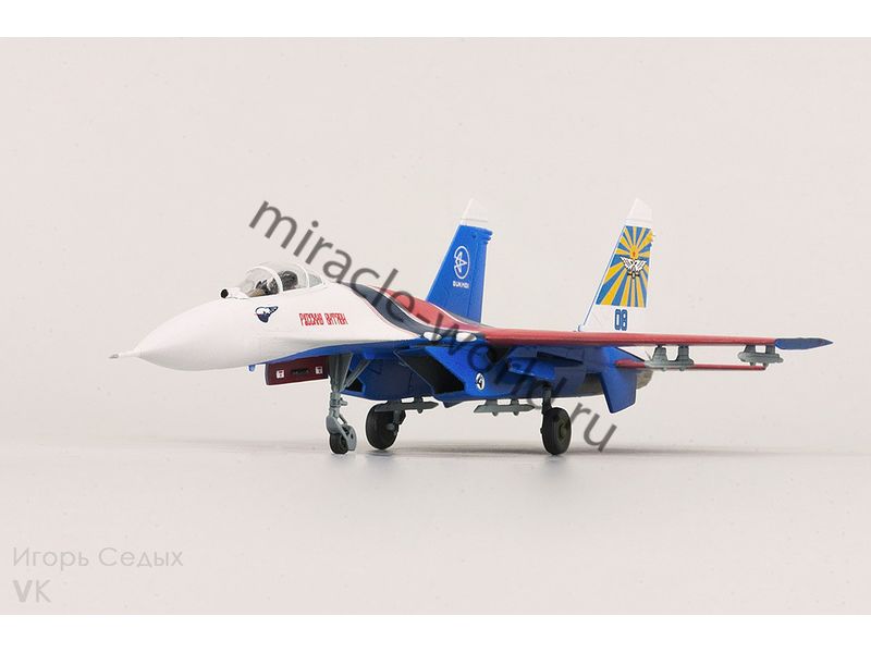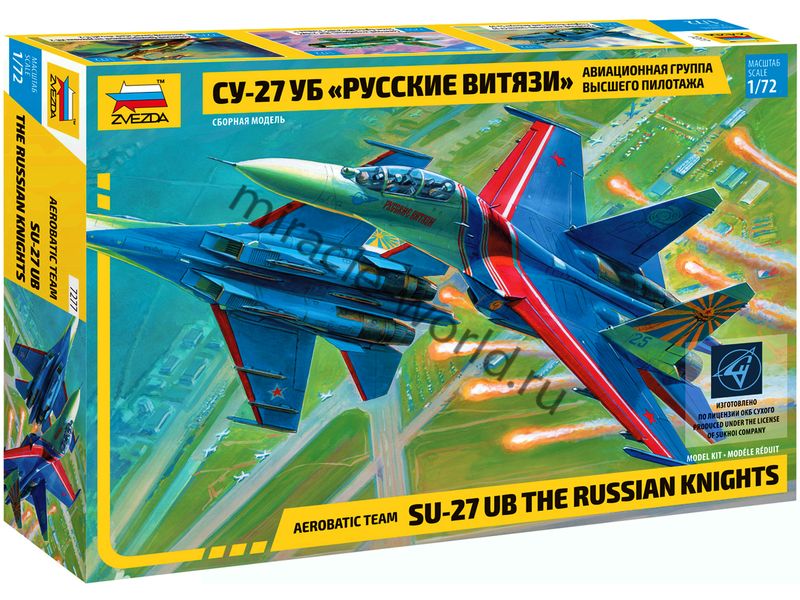 Сборная модель советского / российского многоцелевого истребителя Су-27УБ пилотажная группа "Русские витязи" в масштабе 1/72 от фирмы Звезда / Zvezda (артикул 7277).