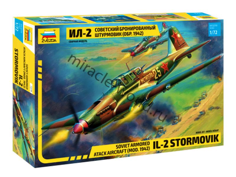 Сборная модель советского штурмовика Ил-2 образца 1942г. в масштабе 1/72 от фирмы Звезда / Zvezda (артикул 7279).