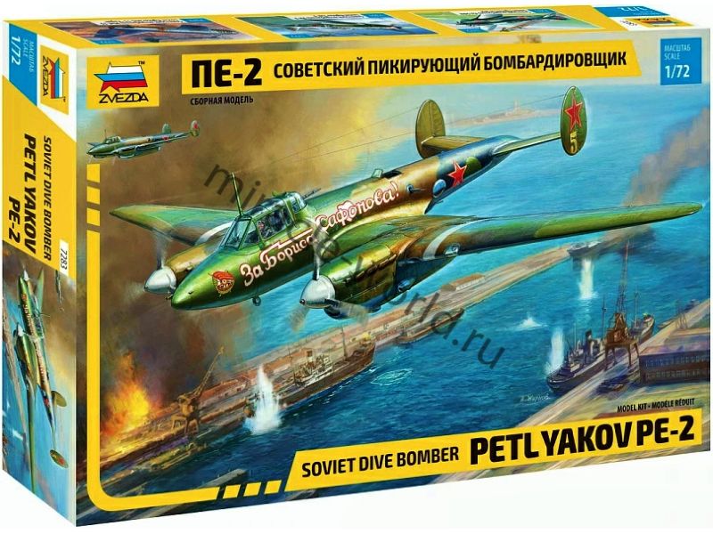 Сборная модель советского пикирующего бомбаридровщика Пе-2 в масштабе 1/72 от фирмы Звезда / Zvezda (артикул 7283).