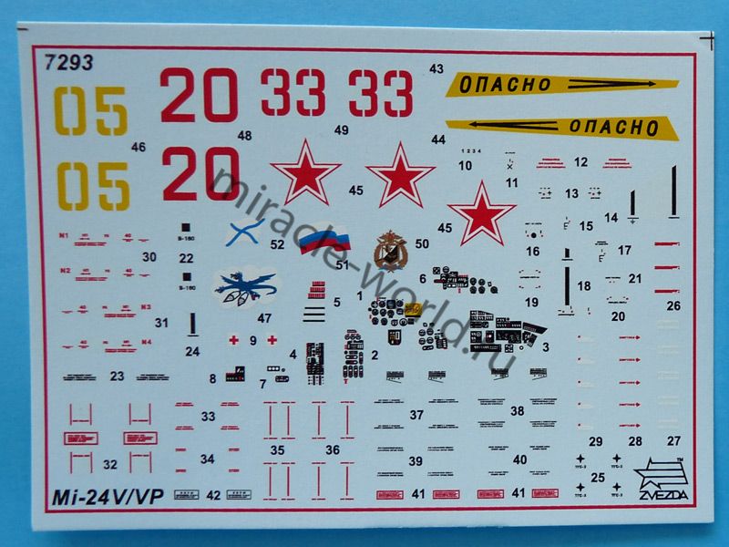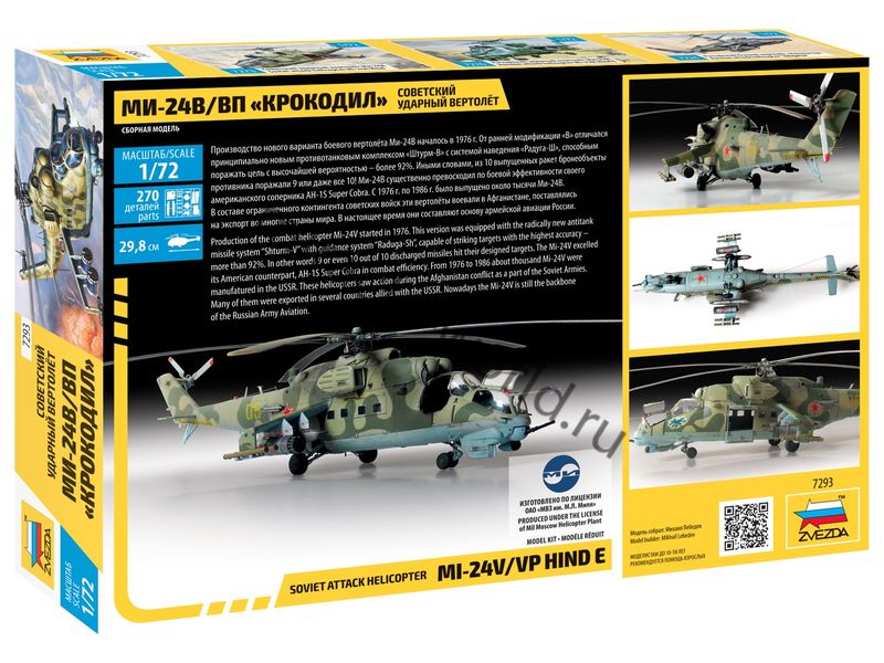 Сборная модель советского / российского многоцелевого ударно - транспортного вертолета Ми-24В / Ми-24ВП в масштабе 1/72 от фирмы Звезда / Zvezda (артикул 7293).
