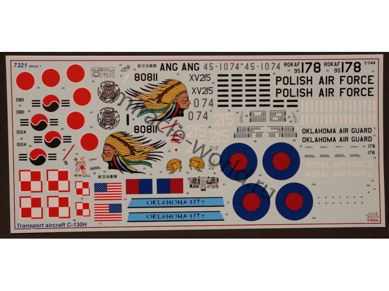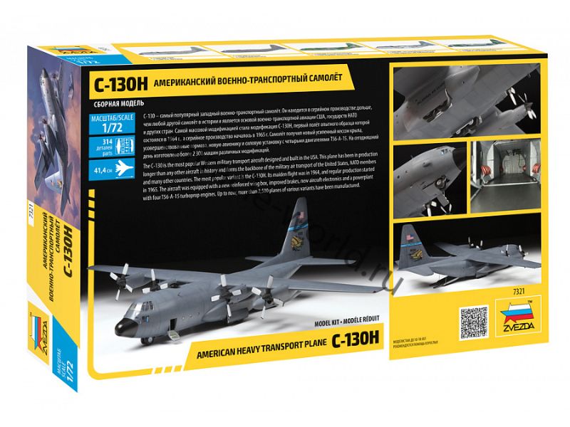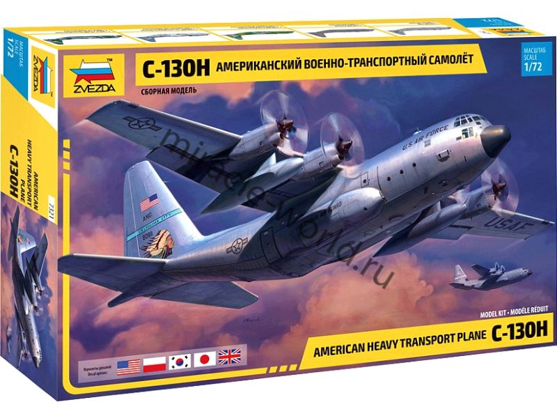 Сборная модель американского многоцелевого военно-транспортного самолета Lockheed C-130H "Hercules" в масштабе 1/72 от фирмы Звезда / Zvezda (артикул 7321).