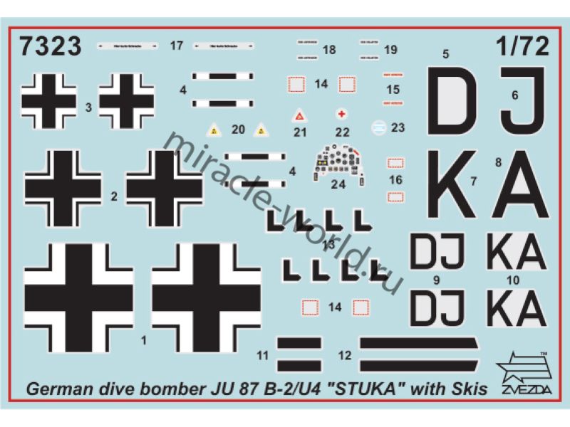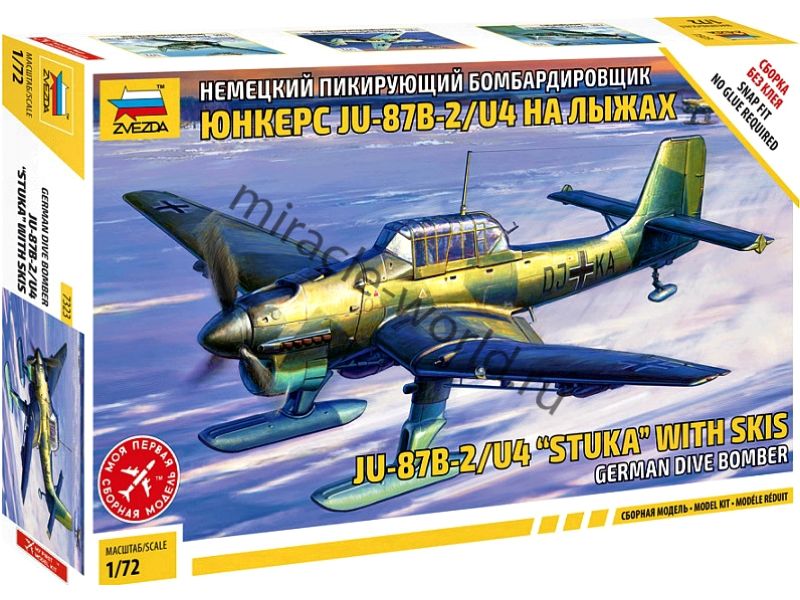 Сборная модель немецкого пикирующего Junkers Ju-87B-2/U4 "Stuka" на лыжном шасси в масштабе 1/72 от фирмы Звезда / Zvezda (артикул 7323).