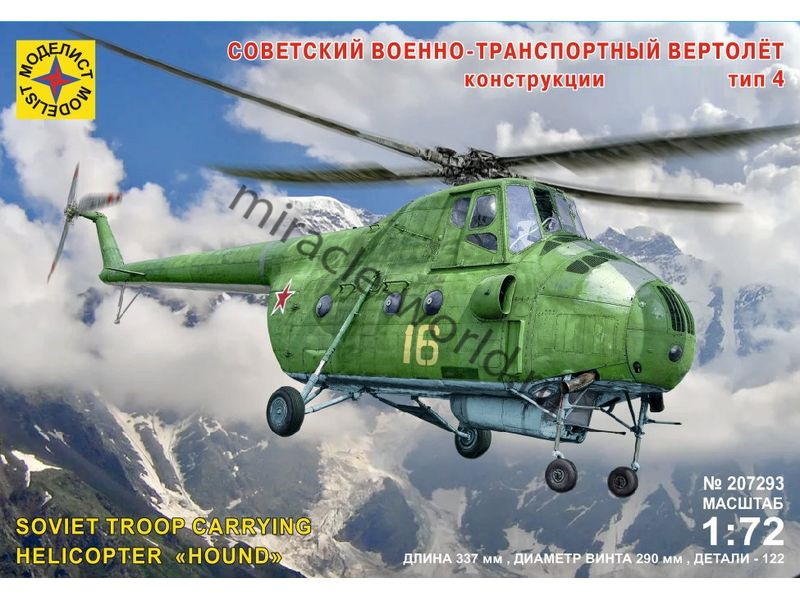 Сборная модель советского многоцелевого вертолета Вертолет (М) тип 4 в масштабе 1/72 от фирмы Моделист (артикул 207293).