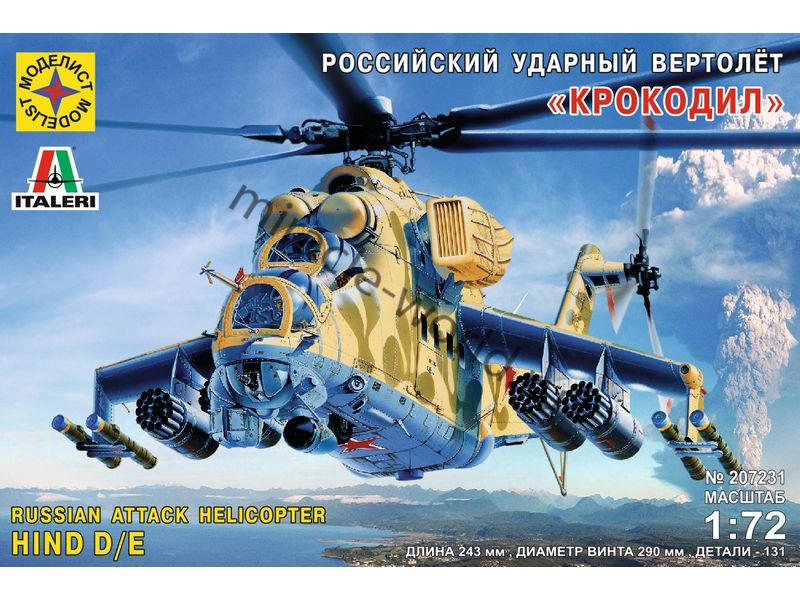 Сборная модель советского / российского ударно-транспортного вертолета Вертолет (М) тип 24Д в масштабе 1/72 от фирмы Моделист (артикул 207231).