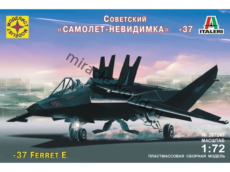 Сборная модель советского малозаметного ударного самолета Самолет (М) тип 37 в масштабе 1/72 от фирмы Моделист (артикул 207247).