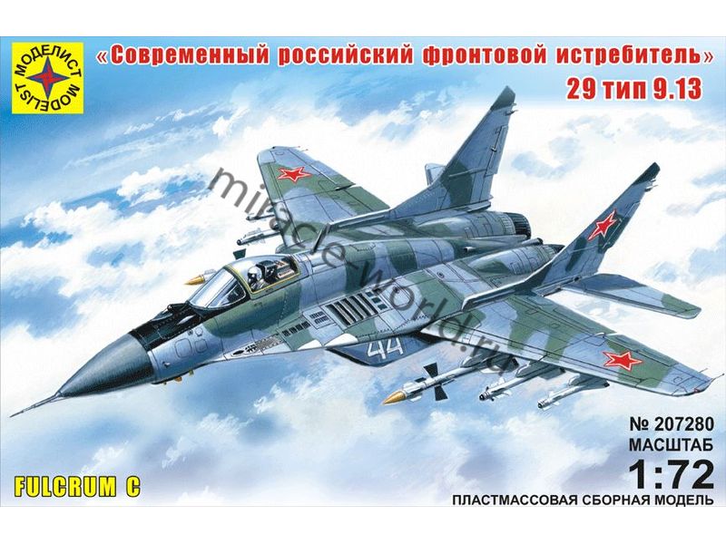 Сборная модель советского / российского фронтового истребителя Самолет (М) тип 29 "9-13" в масштабе 1/72 от фирмы Моделист (артикул 207280).