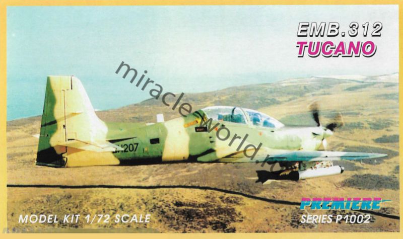 Сборная модель бразильского учебно-боевого самолета, легкого штурмовика Embraer EMB-312 «Tucano» в масштабе 1/72 от фирмы South Front (артикул P1002).