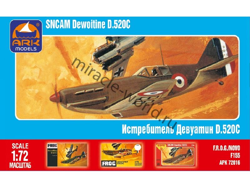 Сборная модель французского истребителя SNCAM Dewoitine D.520C в масштабе 1/72 от фирмы ARK Models (артикул 72016).