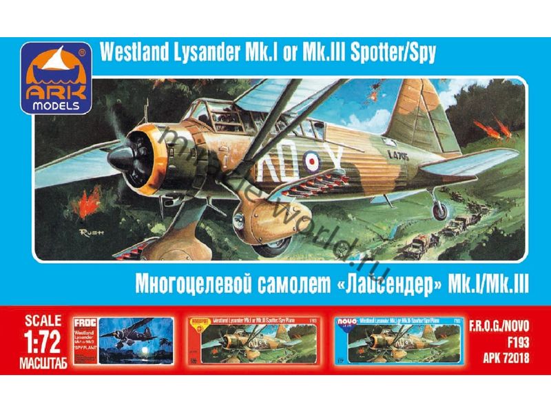 Сборная модель британского легкого вспомогательного самолета Westland Lysander Mk.I / Mk.III в масштабе 1/72 от фирмы ARK Models (артикул 72018).