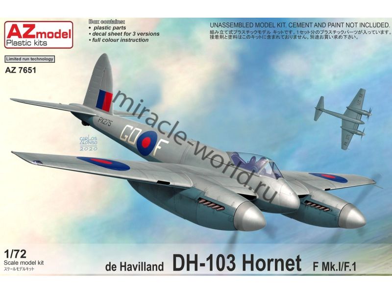 Сборная модель британского многоцелевого истребителя de Havilland DH.103 / DH-103 F.Mk.I / F.1 “Hornet” в масштабе 1/72 от фирмы AZ Model (артикул AZ 7651).