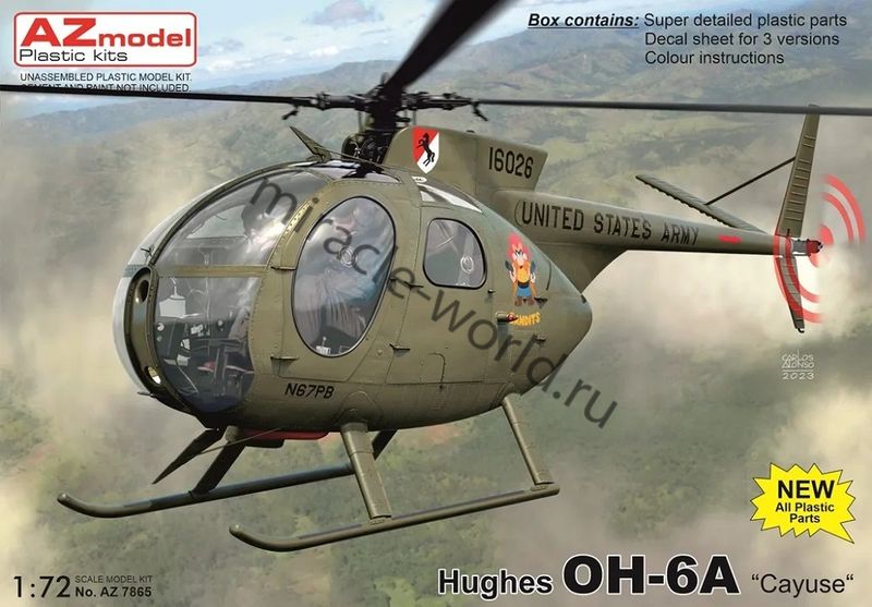 Сборная модель американского вертолета Hughes OH-6A "Cayuse" в масштабе 1/72 от фирмы AZ Model (артикул AZ 7865).