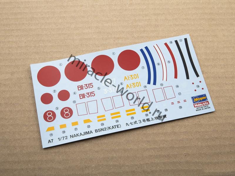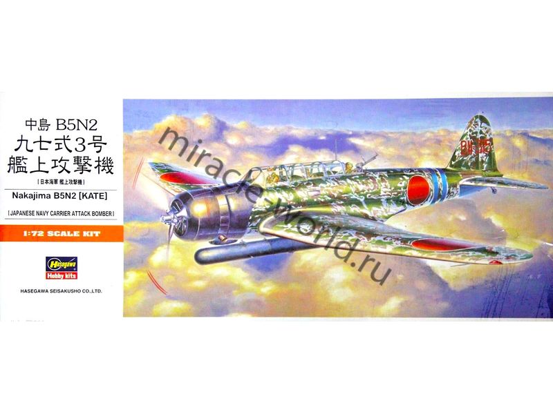 Сборная модель японского палубного бомбардировщика - торпедоносца Nakajima B5N2 Type 97 Model 3 "Kate" в масштабе 1/72 от фирмы Hasegawa (артикул 00137).